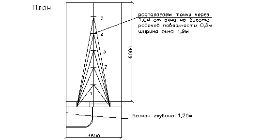 Для оценки условий освещения, создаваемых источником света, пользуются коэффициентом естественного освещения. Пользуемся графическим методом разработанным А.М.Данилюком.
