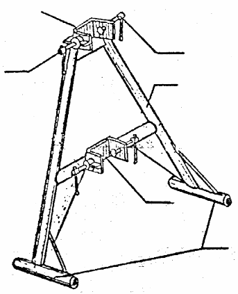 Предназначена для обеспечения устойчивости панелей внутренних стен при их монтаже (Рис,4), представляет собой треугольную сварную раму из труб – 1 с двумя крепежными струбцинами – 2, жестко приваренными к раме на высоте 0,35 и 0,96 м. от опорных башмаков – 4.
