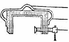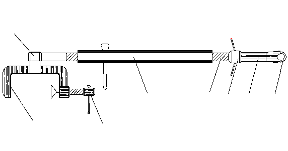 Захват состоит из крюка – 6, приваренного к винту стяжной муфты – 7, предохранительной втулки – 8 и натяжной гайки – 9. Стяжная муфта представляет собой отрезок трубы, в одном конце которого вмонтирована, с возможностью ее вращения, проушина, а на другом крепится гайка с винтом. Струбцина имеет П-образную форму.