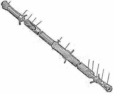 Предназначен для временного крепления панелей наружных и внутренних стен (Рис 2. ). Подкос состоит из телескопической штанги – 1 с запирающим штифтом – 7 и двух захватов. Захват выполнен из винта с крюком – 2, предохранительной втулки – 3, ограничителя – 6 и гаек (внутренней – 5 и натяжная – 4 )