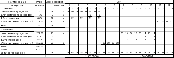 Работы будем производить поточным методом оной специализированной бригадой. Разбиваем этаж на две захватки равных по объему работ.