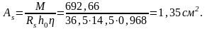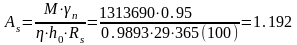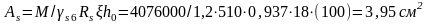 Вычисляем площадь сечения растянутой арматуры: