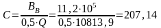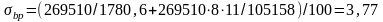 = (263450 / 1780,6 + 263450 · 82 / 105157,9) / 100 = 3,08