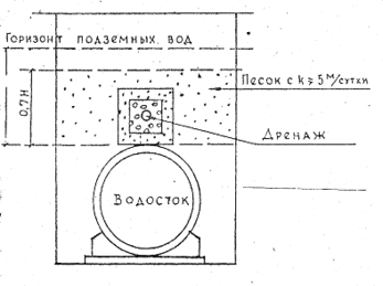 Рис. 2.12 – схема прокладки дренажа над водостоком
