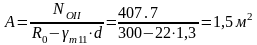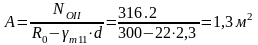 Площадь подошвы фундамента: