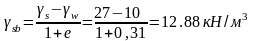Удельный вес с учетом взвешивающего действия воды: