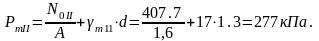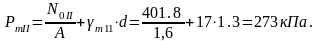Среднее напряжение в грунте под подошвой фундамента: