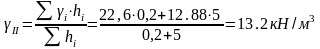Осредненные расчетные значения удельного веса грунта залегающего: