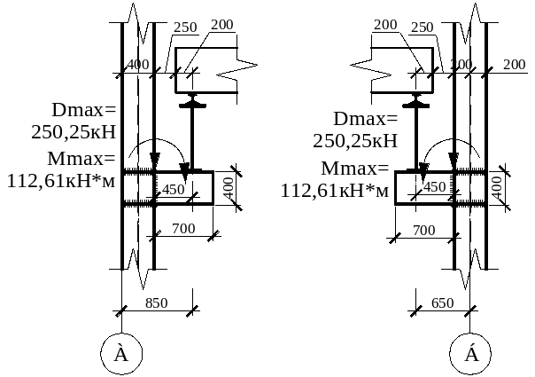 Рис. 8.19 К расчету консоли колонн К1 иК2.