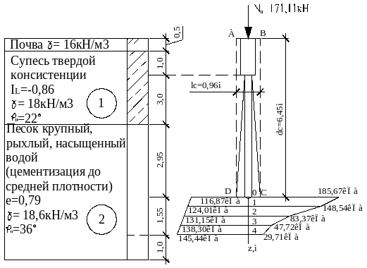 Рис. 8.20. Схема к определению несущей способности сваи под колонну К1.