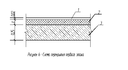 Перекрытие первого этажа: принимаем следующую конструкцию перекрытия первого этажа, теплотехнические характеристики материалов ( рис. 6)