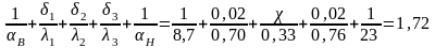 Кm = Kmtr+ Кminf= 0,92+0,489 = 1,409 (Вт/м20С)