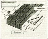 | 1.5 | Частичная подмазка – осуществляется с целью ликвидации впадин и дыр образованных во время расшивки трещин, чтобы выровнять поверхность, (рис 5а). Осуществляется при помощи шпателя приёмом «ёлочка». Шпатлёвка наносится под углом 45градусов оси трещины с одной и другой стороны. Заполненная трещина приглаживается шпателем, |