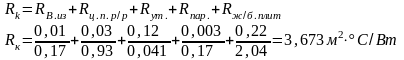 По формуле 4 из [2] определяем общее сопротивление стены теплопередачи: