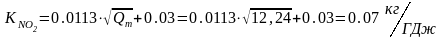 - Удельный выброс оксидов азота при сжигании газа от каждого котла: