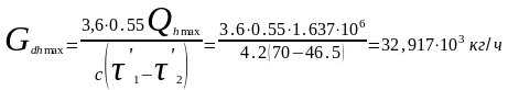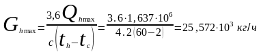 2) Максимальный расход греющей воды на горячее водоснабжение: