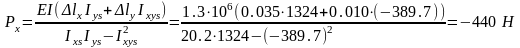 Рх – сила упругого отпора Г-образного компенсатора, Н;