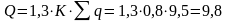 Q1 = q*V1*(tв - tн)*а*К1*К2; Q2 = q*V2*(tв - tн)*а*К1*К2,