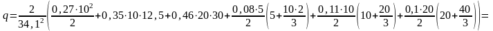 Переменный по высоте скоростной напор ветра заменяем равномерно распределенным, эквивалентным моменту в заделке консольной балки L=34,1 м по формуле: