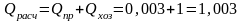 Qхоз – расход воды на хозяйственные нужды, м3/час;
