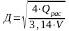 По полученной величине Qрасч = 36,5 м3/час определим диаметр трубы: