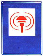 Указательные знаки предназначены для указания местонахождения различных объектов и устройств, пунктов медицинской помощи, питьевых пунктов, пожарных постов, пожарных кранов, гидрантов, огнетушителей, пунктов извещения о пожаре, складов, мастерских и должны быть следующими: синий прямоугольник, окантованный белой каймой по контуру, с белым квадратом внутри с нанесением символического изображение или поясняющей надписи.