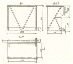 Безопасность работающих на высоте при приемке, установке, выверке и проектном закреплении конструкции обеспечивается применением средств коллективной защиты: приставными лестницами с рабочими площадками, люльками. На рисунке 23 показана односторонняя металлическая люлька на одного человека для обработки стыков примыкания балок небольшой высоты к колоннам.