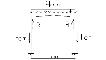 Расчетная равномерно распределенная нагрузка на ригель рамы qРИГ, Н/м, определяется по формуле: