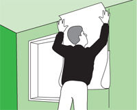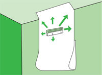 2. Прижмите обои к стене и выдавите воздух, разравнивая обои от центра к краям щеткой или сухой тряпкой (Рис 2.5.2).