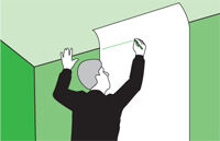 8. Нанесение клея на стену. Клей наносится не на изнаночную сторону обоев, а на стену.