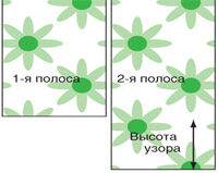 13. Ступенчатое выравнивание. При наклеивании каждого последующего полотнища рисунок сдвигается на половину высоты элемента узора.