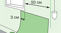 4. С помощью отвеса прочертите вертикальную линию на расстоянии 50 см от окна (ширина полосы минус 3 см) (Рис. 2.4.5).