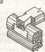 Рис.1.3 Скрепление венцов из бревен вставными шипами: