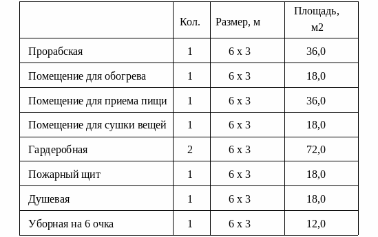При численности работающих до 10 человек в смену вместо комнаты приема пищи допускается предусматривать в гардеробной дополнительной место площадью 6 м2 для установки стола для приема пищи.