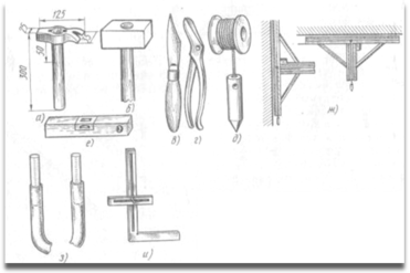 Кроме рассмотренных инструментов при штукатурных работах применяют также пилу, топор, метр, кусачки, клещи, напильник, бруски и др.