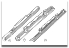 окованные (одностороннее и двустороннее) - рейки из древесины хвойных пород и прикрепленных к ним шурупами пластин из листовой стали; длина 1200 мм;