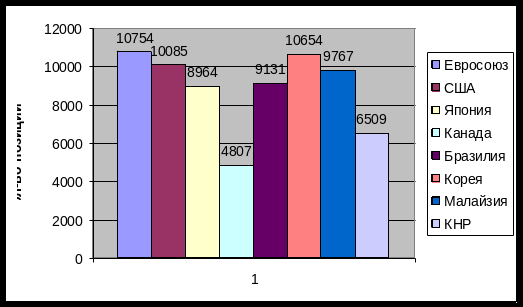Прежде всего, обращает на себя внимание глубоко дифференцированная товарная номенклатура таможенного тарифа. В подавляющем большинстве государств в этих целях используется Гармонизированная система описания и кодирования товаров (ГС). Приведем цифры, говорящие об общем числе товарных позиций в таможенных тарифах ряда стран и групп стран (рис. 1.1):
