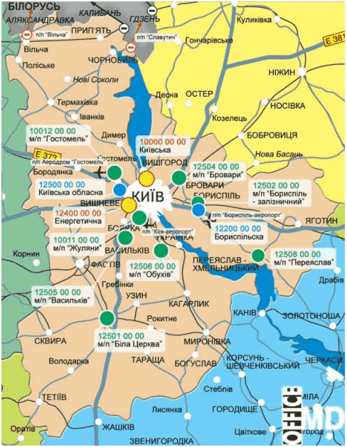 Рис.Г.1. Митні пости Київської обласної митниці в Київській області