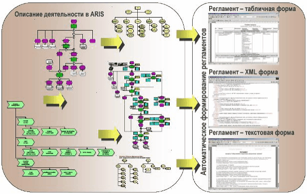 У компаніях присутня велика кількість регламентної документації. Важливо не тільки її створити, також необхідно забезпечувати її актуалізацію й контроль виконання. У цьому випадку існує безліч інструментів для полегшення завдання створення й контролю правильності виконання регламентів. Один з інструментів – Case-засіб ARIS [43] - дозволяє на підставі сформованих моделей бізнес-процесів в автоматичному режимі сформувати наступні регламенти: регламент бізнес-про-цесу, положення про підрозділи, посадові інструкції. Ще одним з інструментів фіксації бізнес-процесів у компанії є інформаційні системи. Існує окремий клас систем для керування бізнес-процесами - Business Process Management System – BPM [50], які дозволяють створити електронний регламент у компанії. Приклада-ми таких систем є системи “електронного документообігу» й workflow системи [51].