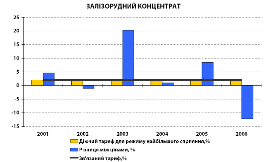Протягом 2001–2006 років рівень ставок ввізного мита на залізорудний концентрат становив 2%. На цьому ж рівні залишиться зв’язана ставка ввізного мита після вступу України до СОТ.