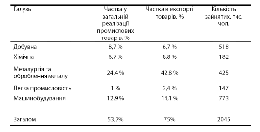 Дослідження проводилося відносно галузей економіки, наведених у Таблиці 3.1 [48], які було вибрано за кількістю зайнятих працівників, частки у обсягах реалізованої промислової продукції та частки в експорті товарів.