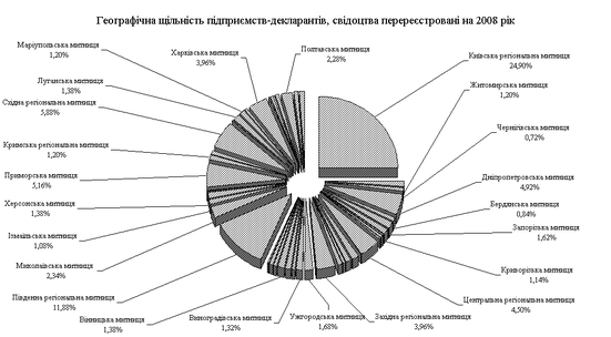 Рис.2.2 - Діаграма географічного розподілу підприємств-декларантів (ТЕО) на території України у 2008 році
