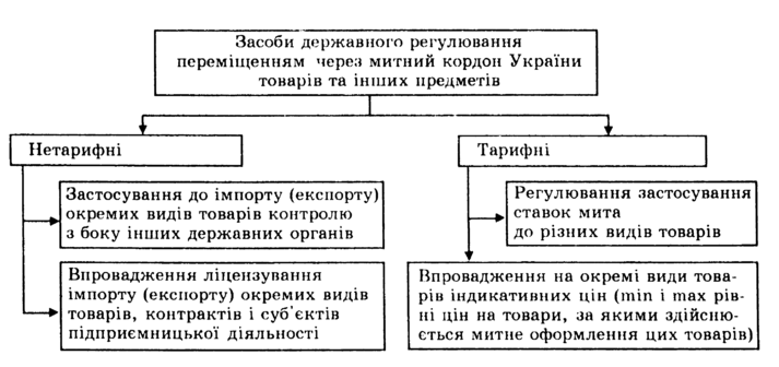 Засоби державного регулювання переміщення через митний кордон України товарів поділяються на дві групи – засоби тарифного та нетарифного регулювання (див. рис.)