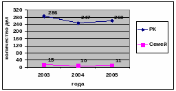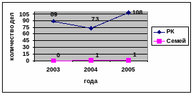 В целом показатели работы таможни «Семей» по выявлению экономических преступлений за 2005 год (11 дел) на 1 дело больше, чем за 2004 год (10 дел). Необходимо отметить, что в целом по Республике Казахстан также наблюдается увеличение количества возбужденных таможенными органами уголовных дел по ст. 209 УК РК «Экономическая контрабанда»: за 2004 год было возбуждено 260 уголовных дел (в 2004 г. – 247), увеличение на 13 дел или 5 % (Рисунок 2.1).