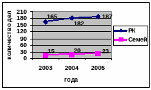 В целом, по Республике Казахстан, как показано на рисунке 2.3, также увеличилось количество фактов задержания наркотических средств: с 194 в 2005 году до 171 в 2004 году (рост на 12%), а также количество возбужденных уголовных дел по ст. 250 УК РК.