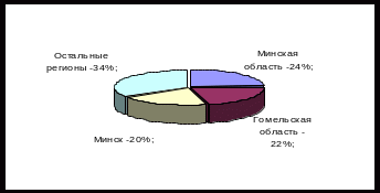 Востребованность комплексными логистическими услугами по регионам Республики Беларусь на 2008 г. представлена на рисунке 8.