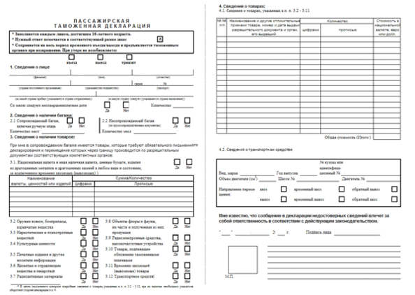 Рисунок Г.1 – Форма Пассажирской таможенной декларации