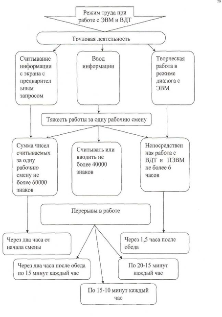 Также необходимо учесть, если в экспертном отделе работает женщина и установлено, что она беременна или кормит грудью, выполнение всех видов работ на ЭВМ и ВДТ должны быть приостановлены ею, воизбежания негативных последствий.
