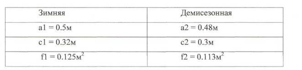 Демисезонная: Σf = 7-0.113 = 0.791м1