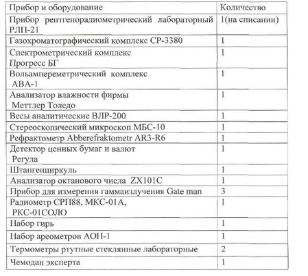 Таможенная лаборатория оснащена (см. рисунок 4.2)